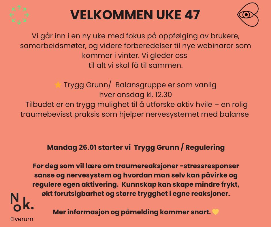 Vi går inn i en ny uke med fokus på oppfølging av brukere, gode samarbeidsmøter, og videre forberedelser til nye webinarer som kommer i vinter. Vi gleder oss til alt vi skal få til sammen.