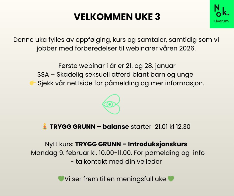 Vårens første webinar tar opp et viktig og krevende tema: SSA – Skadelig seksuell atferd blant barn og unge under 18 år- 21. og 28. januarMer informasjon og påmelding finner du på nettsiden vår.
