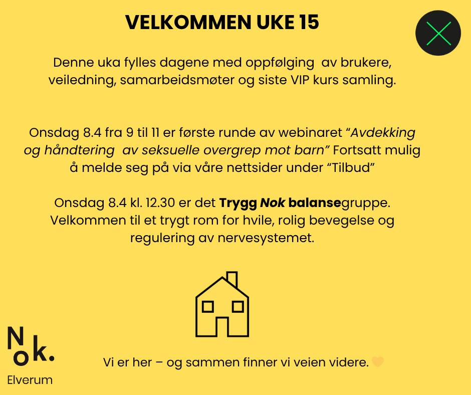 Onsdag 8.4 kl. 12.30 er det Trygg Nok balansegruppe. Påmelding via din veileder.