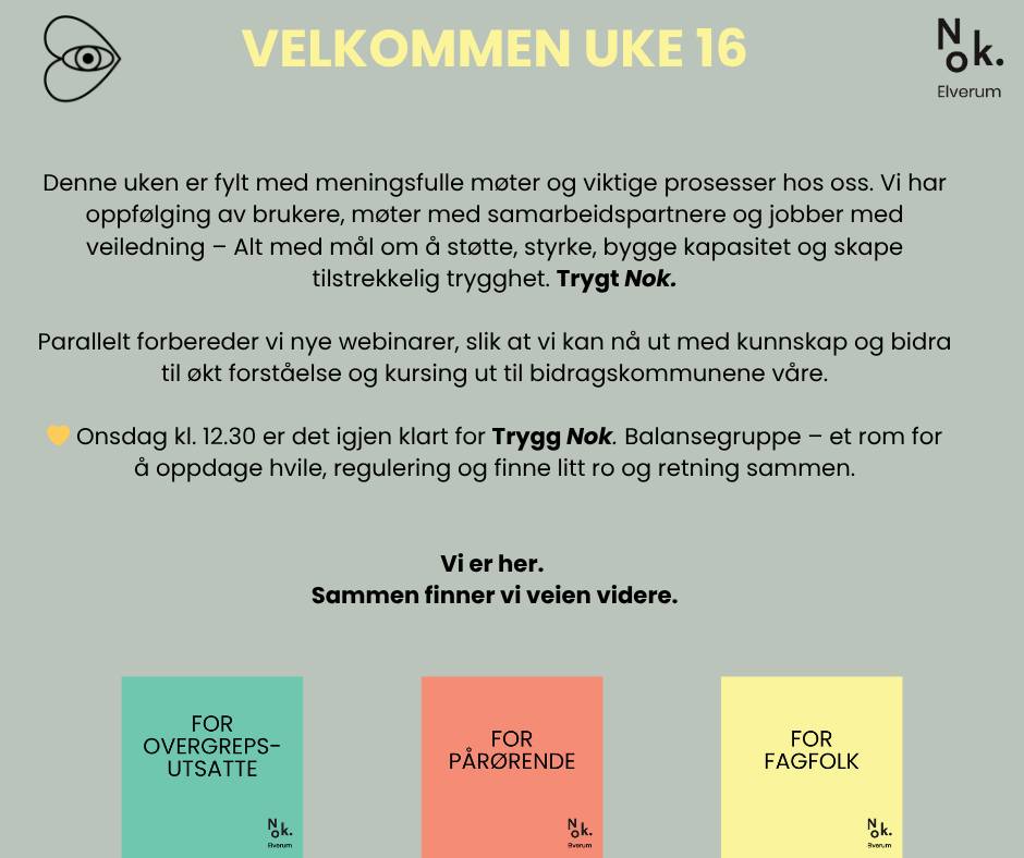 💛 Onsdag kl. 12.30 er det igjen klart for Trygg Nok. Balansegruppe – et rom for å oppdage hvile, regulering og finne litt ro og retning sammen.
